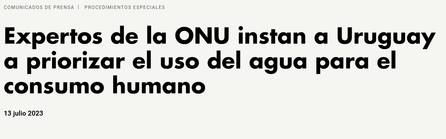 GINEBRA (13 de julio de 2023) – Expertos de la ONU* advirtieron hoy que un considerable aumento en los niveles de salinidad está afectando la calidad del agua potable en Uruguay, afectando a más del 60 por ciento de su población.